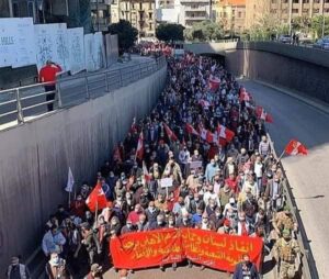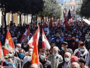 ئەمڕۆ ٢٨/٣/٢٠٢١ لەناو جەماوەری ناڕازی شاری بەیرۆتی لوبناندا (حناغەریب) سکرتێری حزبی شیوعی لوبنان بانگەوازی دەست پێکردنی خۆپیشاندان وناڕەزایەتی گەورە وسەرتاسەری ڕاگەیاندن .(حناغەریب) ئەوەی خستە ڕوو کە لە ڕۆژی 1ئایاری ڕۆژی جیهانی کرێکاران،دەکەینە هەنگاوی کاریگەر بۆ هێنانەدی ئەڵتەرناتیڤێکی باشتر کە دەسەڵات وحکومەتێکی سیکۆلار و ئازادبێتە کایەوە کە ڕێگاخۆشکەر بێت بۆ هێنانەدی یەکسانی و دادپەروەری.
