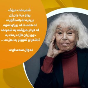 سەنگەری لە زۆرینە دەگرت، بە تایبەتی لە نەریتخوازان و سەرکوتکاران و ئەوانەی زوو زوو پەنایان بۆ کافراندنی ئەم و ئەو دەبرد. پێی گوتین: ڕزگاریی ڕاستەقینە بە ڕزگارکردنی ژنەوە بەندە. هەمیشە لە بەرەی ستەملێکراواندا بوو، لەگەڵ ژن و لەگەڵ هەژاراندا بوو، هەمیشە دژی ستەمی دەسەڵات بوو، بەدرێژایی تەمەنی (١٩٣١ – ٢٠٢١) کە نەوەد ساڵی خایاند، یەک جار بۆ یەک هەڵوێست لایەنی دەسەڵاتی گرت، ئەوەیش تەنیا ئەو وەختەی، سیسی بەڕەی لەژێر پێی لەشکری جەهل ڕاکێشا. (ژن لە خاڵی سفردا) کە تێیدا پێمان دەڵێت: پیاو ڕزگاری نابێت، هەتا ژن ڕزگاری نەبێت، یەکێکە لە کتێبەکانی کە بۆ چل زمان وەرگێڕدراوە. لە کتێبی: (ڕووخساری ڕووتی ژن)دا، تاڵاوی بە گەرووی ئیسلامی سیاسیدا کرد. بە بوێرییەکی کەموێنەوە، باسی ئەو ستەمە جنسییەی دەکرد کە پیاو لە ژنی دەکات و دەیگوت: ڕزگاریی ئافرەت بە ڕابوونی چەوساوەکانەوە بەندە، نەک بە بووژانەوەی ئیسلامی سیاسییەوە. هەیە خۆی وەک داکۆکیکار لە ژن نمایش دەکات، تەمەنی لە پەنجا تێپەڕیوە و پەنجا کتێبی نەخوێندووەتەوە، د. نەوال سەعداوی پەنجا و پێنج کتێبی دانسقەی بۆ داکیکوکیکردن لە ژن نووسی. ژنێک بوو بە مانای وشە، سنووربەزێن و تابووشکێن، پێی دەگوتین: ئایینێک نییە، دژی ژن نەبێت، پێی دەگوتین: سیستەمی بابسالاری، دوژمنە سەرسەختەکەی ژنە. ئەو دایکی فێمینیزمی عەرەبی بوو، لە دونیای عەرەبدا یەکەم کەس بوو، بە ناوی زەینەبی دایکییەوە خۆی ناساند. ئەوەندە شکۆدار بوو، بە هەق دایکی بێ ڕکابەری یاخیبوون و دەنگدلێرترین بانگخوازی ئازادی بوو. بۆ ماوەی نیو سەدە ئاڵاهەڵگری دژایەتیکردنی خەتەنەکردنی کچان بوو، کۆڵی نەدا تا ئەو نەریتە قێزەونە، لە ٢٠٠٨دا لە میسر بە یاسا، بە تاوان لە قەڵەم درا. دەیگوت: ئەوە عەقڵە کە حەز و ئارەزوو جڵەو دەکات، نەك ئەو پارچە گۆشتە بچووکەی لێی تۆقیون و دەیبڕن. ئەو سرووتەیشی بە وەحشیگەری دەزانی، کە سەروەختی هاوسەرگیری، بۆ دڵنیابوون لە پاکیزەیی کچ پێڕەو دەکرا. نزیکەی هەمیشە دەوڵەت و دین، لە دژی هاوسەنگەر بوون. پزیشک بوو، ساڵی ١٩٧٢ لەسەر کتێبە بەناوبانگەکەی: ئافرەت و سێکس، لەکار دەرکرا، سادات هەر بەوەندە لێی نەگەڕا، لە زیندانیشی توند کرد. بۆچی ئەوەندە ئازابوو؟ چونکە خۆی لە کۆت و پێوەندی کەلەپووری دژە ئینسانی سەردەمبەسەرچوو قوتار کردبوو. هەمیشە هەڕەشەی ئیسلامییەکانی لەسەر بوو، دەیانویست ناسنامەی میسریی لێ وەربگیرێتەوە، دەیانویست بە زەبری شەرعی بیابان، لە هاوژینەکەی جوێ بکرێتەوە. تەمەنی هەشتا ساڵ بوو، کە شانبەشانی لاوان، لە گۆڕەپانی ئازادیی قاهیرەدا، هاواری دەکرد: بەڵێ بۆ شۆڕش. بواریان نەدا خۆی بۆ سەرۆککۆمار بەربژێر بکات، بەڵام لە بەهاری عەرەبیدا، لە ڕووخاندنی (سەرۆک) موبارەکدا بەشدار بوو. هەتا تەمەنی بوو بە نەوەد ساڵ هەر تابووی دەشکاند، هەر سنووری دەبەزاند، هەر بە گژ باوەڕی بەردیندا دەچووەوە و شاکاری ئەدەبی و فیکریی پێشکەش دەکرد. ڕەشەبای هەڕەشە قەت نەیتوانی، قەدی بڵند و پتەوی بهەژێنێت و چراوگی خەباتی بکوژینێتەوە. هەر کە کتێبێکی تازەی بڵاو دەکردەوە، ستەمکاران و تاریکیپەرستانی ئەوق دەکرد. ئەم شۆڕشگێڕە مەزنە، کە تا ژیا لە پێناوی ڕزگاریی ئافرەت و گۆڕانکاریی کۆمەڵایەتیدا تێکۆشا، لە سەردەمی ساداتدا زیندانی کرا، سەروەختی موبارەکیش ناچاریان کرد میسر بەجێ بهێڵێت. لەبارەی ڕژێمی (سیسی)یەوە دەیگوت: من هەرگیز یەکێک نەبووم لە مێگەل و نابم، ئەم دەسەڵاتە بەرانبەر بە ئافرەت، لەوانی پێشوو باشترە، ئەوەی لە یۆنیوی ٢٠١٣دا ڕووی دا، کوودەتا نەبوو، شۆڕش بوو. نەوال سەعداوی بەوە بەناوبانگ بوو، هەمیشە بە ڕاشکاوی و بە ڕوونی دەپەیڤی، هەمیشە بەبێ سڵکردنەوە، ئەوەی بن بەڕەی دەخستە سەر بەڕە. لە حیزبە چەپەکانی ناوچەکە شۆڕشگێرتر بوو، کە ئازادیی ژنیان، تەنیا لە سەربەخۆییی ئابووریدا کورت دەکردەوە. دەیگوت: وەک چۆن ئەوە سووکایەتیکردنە بە مێ، ئەگەر خەتەنە بکرێت، ئەوەیش هەر سووکایەتیکردنە پێی، ئەگەر ب