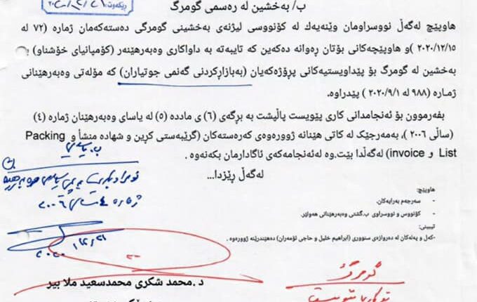 # پەراوی وەزارەتەکەی بێگەرد تاڵەبانی، سەبارەت بەنرخی گەنمی جوتیاران. #وەپەراوێکی تر سەبارەت بەلێ خۆش بوونی باج وگومرگ لەکۆمپانیای خۆشناو.