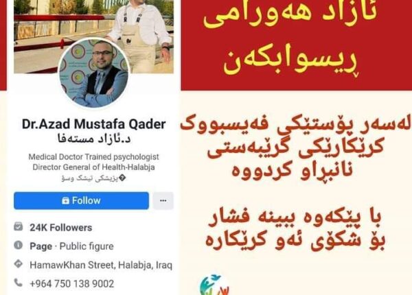 نامەیەکی کراوە بۆ پشتیوانی گەڕانەوەی کرێکارەکەی هەڵبجە ئاراستەی بەڕێوەبەری تەندروستی هەڵبجە دەکرێت!