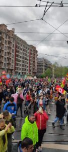 لەفەرەنسا لەلایەن سەندیکاکانی کرێکاران وڕێکخراوە وحیزبە کۆمۆنیست و کرێکاری و چەپەکانەوە بەشێوازی فراوان بەشداری خۆپیشاندانیان کرد لەسەرجەم شارەکانی فەرەنسا لەڕۆژی ١ی ئایار ،