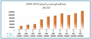 لە بودجەی ناوەندی عێڕاق، لە یەکەمین دە (١٠) ساڵی دوای ڕووخانی ڕژێمی بەعس (٢٠٠٤-٢٠١٤)، وێڕای داهاتی ناوخۆ، پشکی هەرێم لەە بودجەیە لە (%١٧) بووە، کە کۆی گشتی بەپێی ئامارە فەڕمیـیەکان لەو ماوەیەدا (٤٢) ملیار دۆلار پشکی هەرێم بووە (بڕوانە جەدوەلی ئامارەکە).