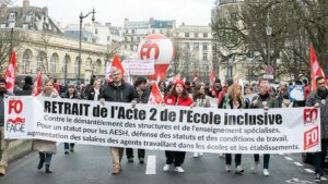 لە قوتابخانە و پەیمانگا و ئامادەییەکان، مامۆستایان، کارگێڕی، کارگێڕی و کارمەندانی پزیشکی-کۆمەڵایەتی، ڕۆژی پێنجشەممە 6ی شوباتی ٢٠٢٤ مانیان گرتبوو. لەسەر بانگەوازی بزووتنەوەیەکی گەورەی نێوان سەندیکاکان کە FO بەشداری تێدا کرد، زیاتر لە ١٠ هەزار کەس لە شەقامەکانی پاریس خۆپیشاندانیان کرد بۆ بەرگریکردن لە قوتابخانە حکومییەکان.