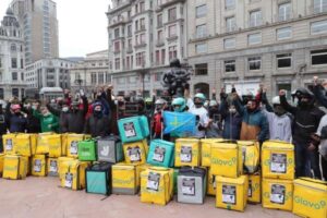 ئیسپانیا:: 12FEB2021 کرێکارانی دلیڤەری کەبۆکۆمپانیاکانی گەیاندنی خۆراک کار ئەکەن زۆربەی کات هیچ چەشنە گرێبەستێکی کاریان لەگەڵ خاوەنکاردا نییە.سیماکانی کارکردن لەم کەرتە ڕوولەسەرە بەهۆی پەتای ڤایرۆسی کۆرۆناوە بریتییە لە کرێی کەم، سەعاتکاری زۆر، مەترسییەکانی هاتووچۆ، جگە لە بێبەشبوون لە دەستەبەربوونی کرێکار و دەرماڵەکانی تەندروستی و …هتد.