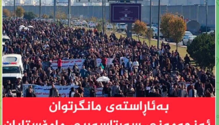ئەنجومەنی سەرتاسەریی مامۆستایان و فەرمانبەرانی ناڕازیی؛ سبەینێ دووشەممە 3/ 2/ 2025 خۆپیشاندانێکی گەورە و بەرفراوان بە ئاڕاستەی خێوەتگەی هاوپیشە مانگرتووەکانمان ئەنجامدەدەین.