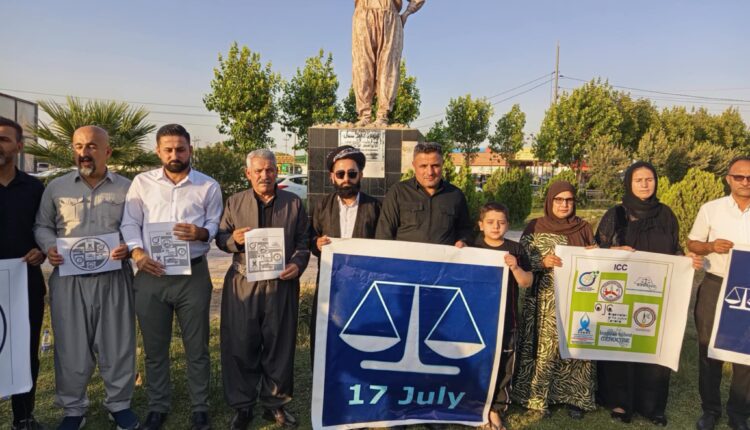 ئەمڕۆ پێنج شەمە 17-7 بەشێك لە رێكخراوەكانی جینۆساید , لە شارەكانی هەولێر, سلێمانی, هەڵەبجە, رزگاری , چەمچەماڵ بە بۆنەی رۆژی دادپەروەری تاوانكاری جیهانی گردبوونەوەو كۆنفرانسی رۆژنامەنووسیمان ئەنجامدا , كۆمەڵَ داواكاریمان خستە بەردەم رایگشتی كوردستانی و عێراقی . دەقی بەیاننامەكەمان ئەمەی خوارەوەیە: