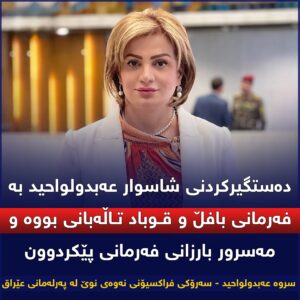 سەبارەت هەمان دۆسییە سروە عەبدولواحید – سەرۆکی فراکسیۆنی نەوەی نوێ لە پەرلەمانی عێراق دەڵێت دەستگیرکردنی شاسوار عەبدولواحید بە فەرمانی بافڵ و قوباد تاڵەبانی بووە و مەسرور بارزانی فەرمانی پێکردوون.