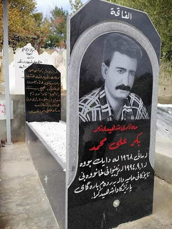 ئەیانوت ئەوانە ئاژاوەچین با بڕۆن، ئێوە درێژە بەڕێپێوانەکەدان بدەن. بەکریان لەوێ لە کۆڵانەکەدا کوشت! بۆ وەرگرتنەوەی جەنازەکەی ، من لەگەڵ شێرکۆی برای بەکر عەلی، چوین بۆ پۆلیسی سەهۆڵەکەو لەوێبووین چەند سەعاتێک تا وەرگرتنەوەی جەنازەکەی.