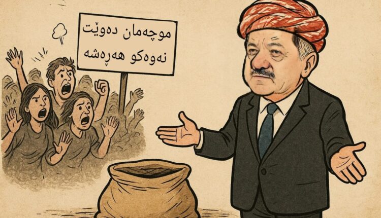 چەند مانگێک لەمەوبەر و لەوکاتەی تازە بە تازە بەغدا موچەی ناردبوو، بەبێ ئەوەی هەرێم پابەندییەکانی خۆی جێبەجێ بکات، مەسعود بارزانیی سەرۆکی پارتی، دوای چەند ساڵێک لە سڕکردنی هاتەوە سەر شاشە، لەبری ئەوەی بە چەند دێڕێک دۆخی چەقبەستووی هەرێم و بەغدا بشکێنێت و هەوڵی زیاتر لێکنزیکبوونەوە بدات، وەک پیشەی هەمیشەیی خۆی دەستی کرد بە هەڕەشە و گوڕەشە لە بەغدا و دەیوت چیتر قبوڵی ناکەین بەغدا ناردنی موچە دوابخات!